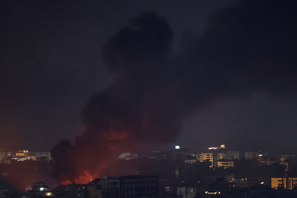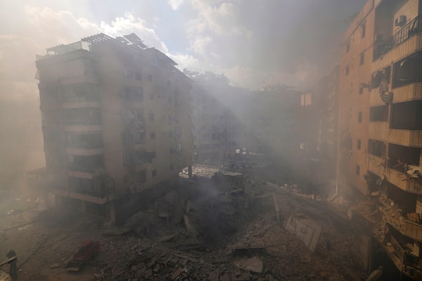 Smoke envelops the area near destroyed buildings at the site of an Israeli airstrike in Dahiyeh, Beirut, Lebanon, Oct. 2, 2024.Hassan Ammar/The Associated Press