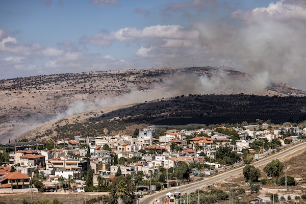 Smoke clouds billow from a fire that broke out after a rocket fell in the Israeli side of the border with Lebanon, in the Upper Galilee region of northern Israel, on Oct. 2, 2024.JOHN WESSELS/AFP/Getty Images