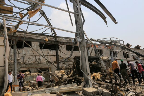 People check the destruction at a power station at the port in Yemen's rebel-held Hodeida city on Sept. 30, 2024, a day after it was targeted in Israeli strikes.-/AFP/Getty Images