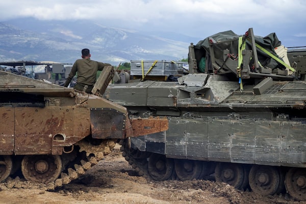 An Israeli soldier sits on a military vehicle near the Israeli side of the border with Lebanon.Tyrone Siu/Reuters