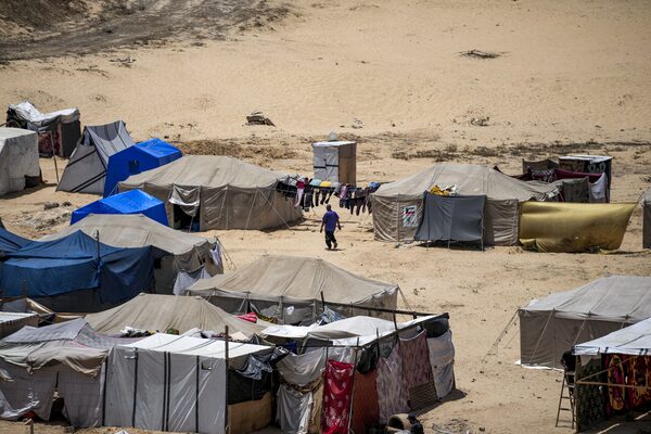 A Palestinian man displaced by the Israeli bombardment of the Gaza Strip, walks at a makeshift tent camp in Khan Younis, southern Gaza Strip, on July 4.Abdel Kareem Hana/The Associated Press