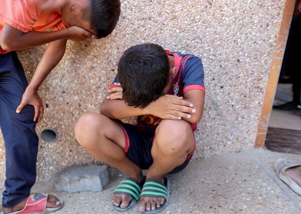 Palestinian boys mourn their brother, who was killed by Israeli fire while seeking aid near a distribution point in Rafah.Ramadan Abed/Reuters