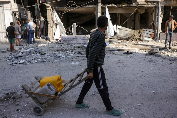 A Palestinian man walks past the rubble of a building targeted in an Israeli strike as people search for survivors in Gaza City on Sunday.BASHAR TALEB/AFP/Getty Images