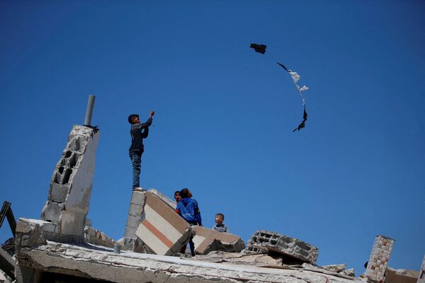 Children play amidst the rubble of houses in Jabalia refugee camp, in the northern Gaza Strip on May 8.Mahmoud Issa/Reuters
