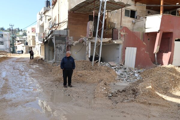 A man stands in a damaged street following an Israeli army raid the previous day in Jenin, in the occupied West Bank, on March 13.JAAFAR ASHTIYEH/Getty Images