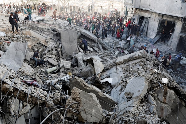 Palestinians inspect the damage at the site of an Israeli strike at the Nuseirat refugee camp, in the central Gaza Strip, on Dec. 13Ramadan Abed/Reuters