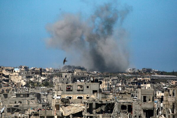 Smoke rises from an Israeli bombardment west of Beit Lahia in the northern Gaza Strip on March 24.BASHAR TALEB/AFP/Getty Images