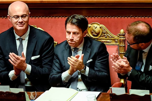 Italian Prime Minister Giuseppe Conte, backed by the anti-establishment 5-Star Movement and centre-left Democratic Party, won an initial confidence motion in the lower house on Monday, meaning his coalition can now forge ahead with its pro-European agenda.FILIPPO MONTEFORTE/AFP/Getty Images