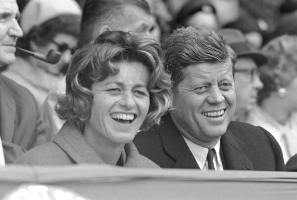 In this April 10, 1961, file photo, U.S. President John F. Kennedy and his sister Jean Kennedy Smith watch an opening day baseball game at Griffith Stadium, in Washington.Anonymous/The Associated Press