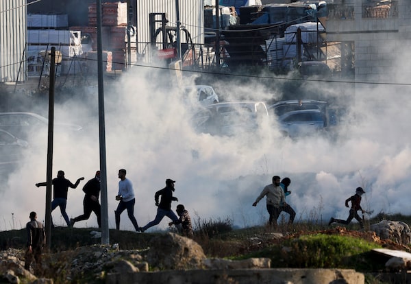 People run as smoke rises behind amid clashes with Israeli troops, near Ramallah in the Israeli-occupied West Bank on Jan. 26.AMMAR AWAD/Reuters