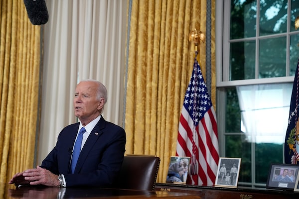 President Joe Biden addresses the nation from the Oval Office of the White House in Washington, on July 24, about his decision to drop his Democratic presidential re-election bid.Evan Vucci/The Associated Press