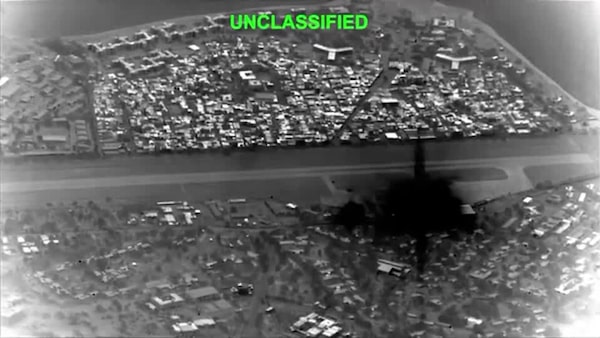 Various targets on Iran's Kharg Island were apparently struck in monochrome surveillance footage released by U.S. President Donald Trump on Friday.