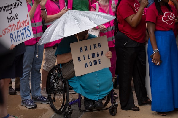 Supporters of Kilmar Abrego Garcia rally outside of the U.S. District Court in Greenbelt, Md.Mark Schiefelbein/The Associated Press