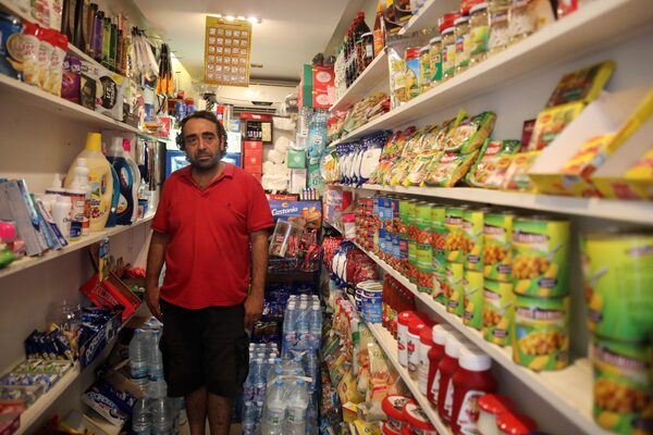 Dani Fayoumi, 47, owns a small general store in Hamra, one of the busiest neighbourhoods in Beirut, where the main street is full of restaurants and cafés. The shop has been in his family for 70 years. He said he’s doing okay, because he’s not selling brand-name items; most of his products come from Syria and Turkey.