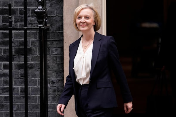 Britain's Prime Minister Liz Truss leaves 10 Downing Street to attend the weekly Prime Ministers' Questions session in parliament in London, on Oct. 19.Alberto Pezzali/The Associated Press