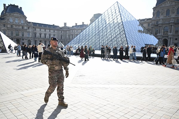 A soldier patrols in courtyard of the Louvre museum in Paris on Oct. 30.Emma Da Silva/The Associated Press