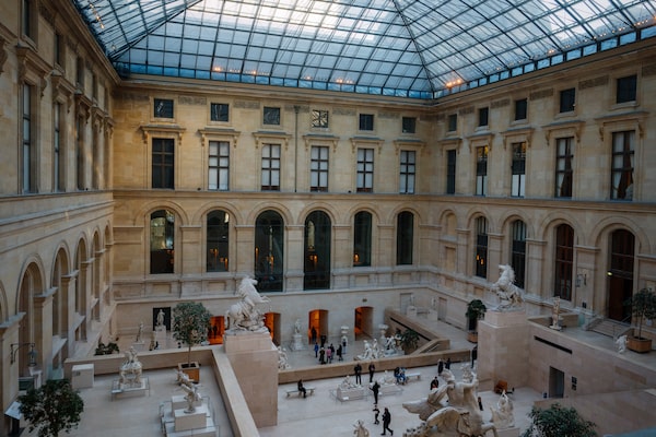 Visitors look at statues inside the Cour Marly at the Louvre Museum in Paris on Jan. 23.DIMITAR DILKOFF/AFP/Getty Images