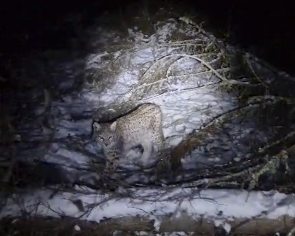 This image taken from video and made available by the Royal Zoological Society of Scotland shows a lynx in the Cairngorms National Park, Scotland, on Dec. 9, 2024.The Associated Press
