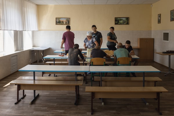 A Mennonite school in Mykolay-Pole, a village near the city of Zaporizhzhia, is now home to a canteen for refugees. Mennonites, an Anabaptist sect of Christianity, have a long history in this part of Ukraine.Photography by Anton Skyba/The Globe and Mail