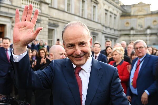New Irish Prime Minister Micheál Martin greets supporters outside Leinster House in Dublin on Jan. 23.Charles McQuillan/Getty Images