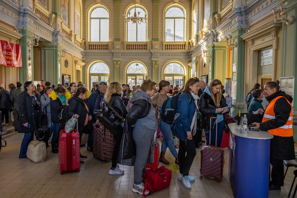 Crowds of people in a railway station in Przemysl, Poland, buying train tickets to Ukraine on Oct. 18.Anna Liminowicz/The Globe and Mail