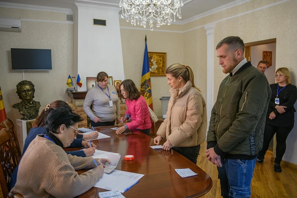 With more than 97 per cent of precincts reporting, Ms. Sandu had won just over 54 per cent of the vote, putting her on course to defeat challenger Alexandr Stoianoglo. Moldovan elections were held at the Embassy of Moldova in Kyiv, Ukraine on Nov. 3.Olga Ivashchenko/The Globe and Mail
