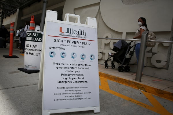A sign is seen at the entrance of Jackson Memorial Hospital, in Miami, Fla., on June 18, 2020.MARCO BELLO/Reuters