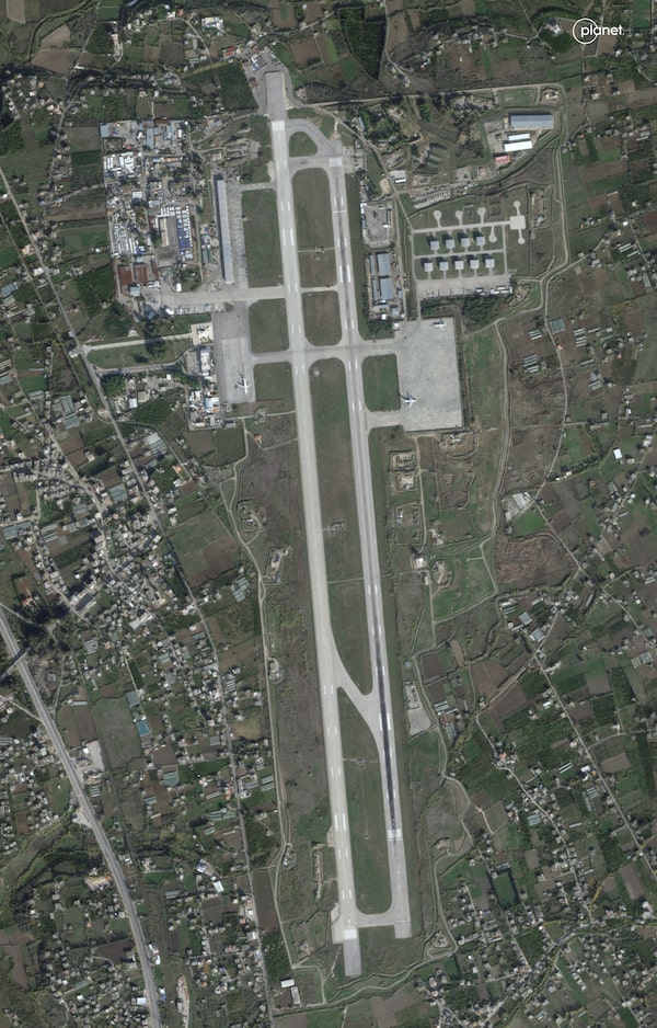 This handout satellite picture provided by Planet Labs PBC shows the Khmeimim Air Base in Syria's Latakia governorate.-/AFP/Getty Images