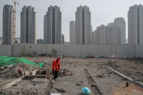 A sidewalk under construction near new residential buildings in the Binhai district of Tianjin, China on March 3, 2023.GILLES SABRIE/The New York Times News Service