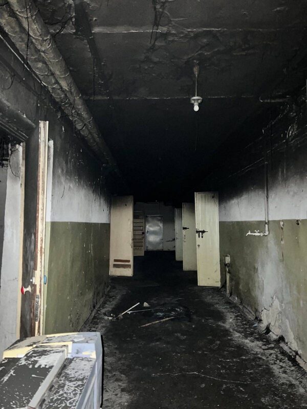 A corridor where Ukrainians were detained on Pylypa Orlyka street in Kherson, Ukraine. The Mobile Justice Team says Russians tried to start a fire in order to hide traces of their crimes and burn documentation before retreating from Kherson.Mobile Justice Team/Supplied
