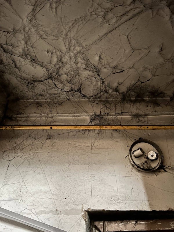Cobwebs smoky with soot in the basement of the detention center on Pylypa Orlyka street in Kherson.Mobile Justice Team/Supplied