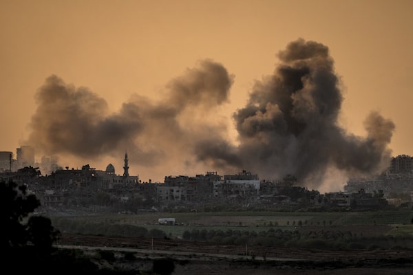 Smoke from Israeli airstrike seen in Gaza strip from Sderot, Israel, on Oct. 15.Sergey Ponomarev/The New York Times News Service