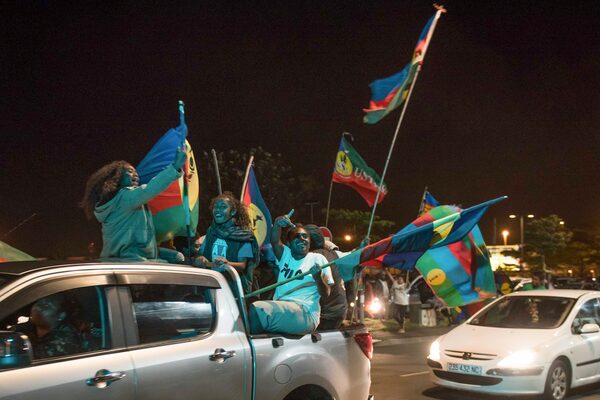 Pro-independence supporters celebrate the results of the vote in Noumea, New Caledonia, Oct. 4, 2020.Mathurin Derel/The Associated Press