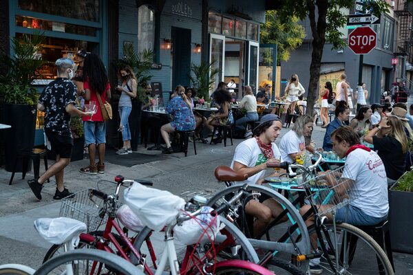 Customers dine outside Dudley's, June 22, 2020, in New York.John Minchillo/The Associated Press