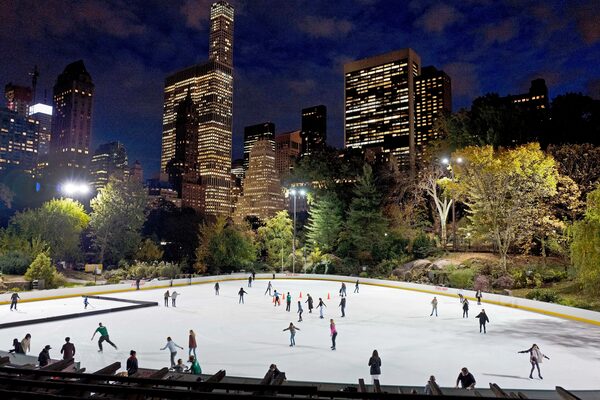 In this Nov. 3, 2016, file photo, skaters take to the ice at Wollman Rink, in New York's Central Park.Mark Lennihan/The Associated Press
