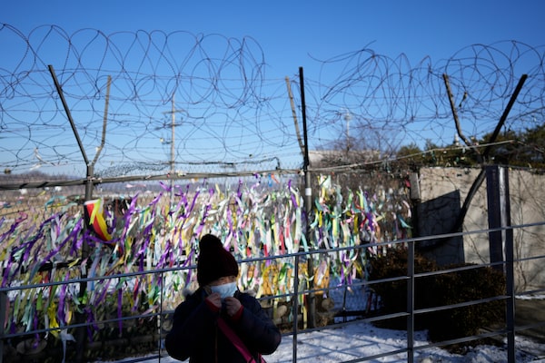 A visitor tours near ribbons with messages wishing for peace between the two Koreas, at the Imjingak Pavilion, in Paju, South Korea, on Jan. 16.Lee Jin-man/The Associated Press