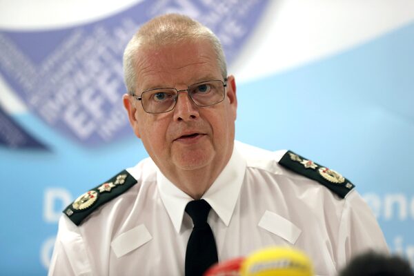Police Service of Northern Ireland Chief Constable Simon Byrne speaks during a press conference after an emergency meeting of the Northern Ireland Policing Board at James House in Belfast, Northern Ireland, on Aug. 10.Liam McBurney/The Associated Press