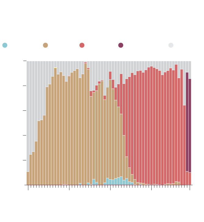 Proportion of the different COVID-19 variants of concern reported weekly in South Africa since October 2020