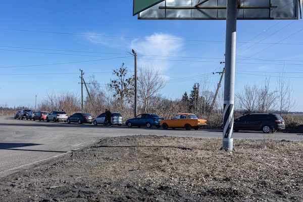 Long lines for fuel become new routine in Ukraine amid Russian army increases efforts to conquer the country. Fastiv, Ukraine. 28 Feb 2022 Anton Skyba for The Globe and MailANTON SKYBA/The Globe and Mail