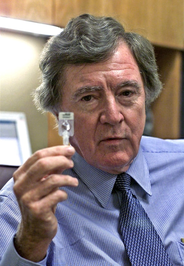 Dr. Gordon Perkin, seen here in his office in Seattle holding a sample of an immunization shot, on July 27, 2000.STEVAN MORGAIN/The Associated Press