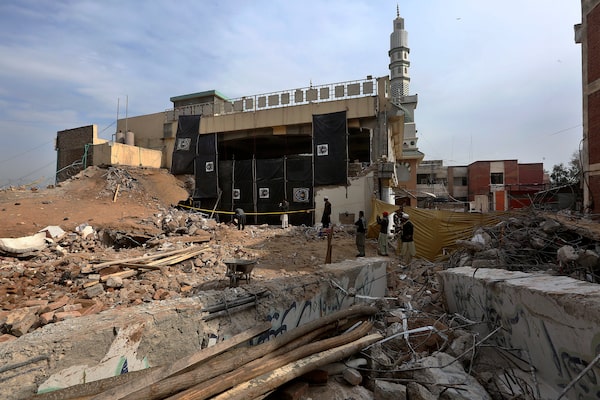 The site of a suicide bombing, in Peshawar, Pakistan, on Feb. 2.Muhammad Sajjad/The Associated Press