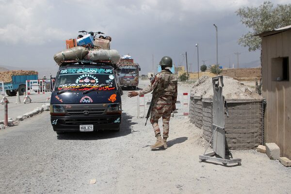 A paramilitary soldier stops and checks passenger vehicles at a security checkpoint on the outskirts of Quetta, Pakistan, on Aug. 27.Naseer Ahmed/Reuters