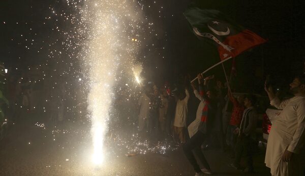Supporters of Pakistani opposition party hold fireworks to celebrate following the Supreme Court decision, in Karachi, Pakistan, on April 7.Fareed Khan/The Associated Press
