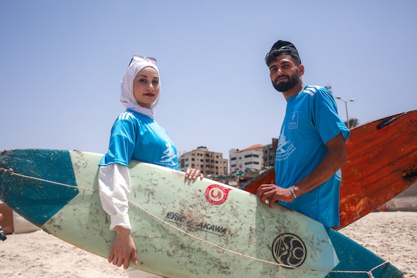 His sister, Sabah Abu Ganem, 23, a mother of three, faced different challenges in her effort to ride the waves. “It took me six years to convince my husband to allow me to surf,” she said. “It’s not about the blockade for me. It’s about community pressure.” She and her brother are to take part in the first local competitions this month, waves permitting.