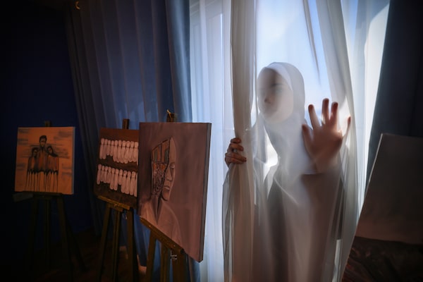 Painting has helped Palestinian artist Zainab al-Qolaq, 23, to process the trauma of an Israeli air strike that levelled her Gaza City home in 2021, burying her alive for 12 hours. She emerged to learn 22 members of her family were killed.Photography by Anas Baba/The Globe and Mail