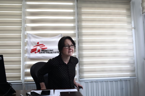 Helen Ottens-Patterson of Médecins sans frontières (Doctors Without Borders) speaks at her Gaza City office.