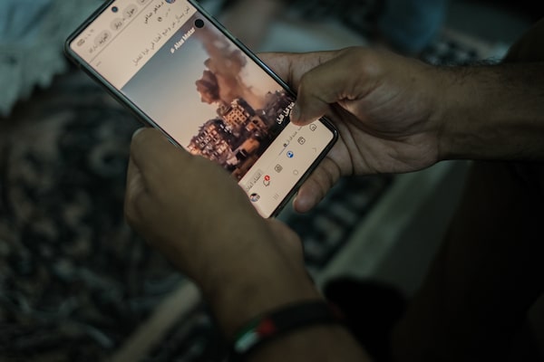 Maher Soliman looks at images of bombing in the Gaza Strip.Aly Hazzaa/The Globe and Mail