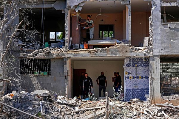 Palestinians assess damage after Israeli air strikes, in Beit Hanun, in the northern Gaza Strip, on May 14, 2021.MAHMUD HAMS/AFP/Getty Images