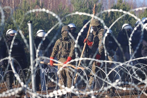 In front of them, on the other side of thick coils of barbed wire that mark the frontier of not just Poland, but also the European Union and NATO, were some 12,000 Polish soldiers and riot police, brought to the border region after the Polish government declared a state of emergency in the area. On Tuesday, Lithuania, which is also a member of the North Atlantic Treaty Organization, declared a state of emergency along its own border with Belarus after seeing a surge in attempted illegal crossings.