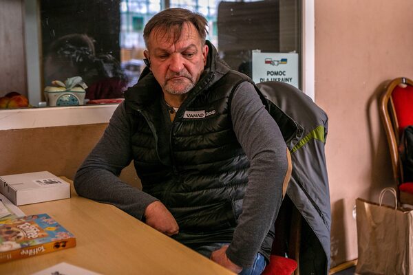Valentin Pshenichnuy wants to do his part, too. He arrived here from Kremenchuk, southeast of Kyiv, with his wife and three children. He’s desperate to work, but his options here have been limited, largely because he lost all of his fingers to frostbite more than a decade ago. He has been volunteering at the sports hall, but life in Duszniki-Zdrój hasn’t been easy.